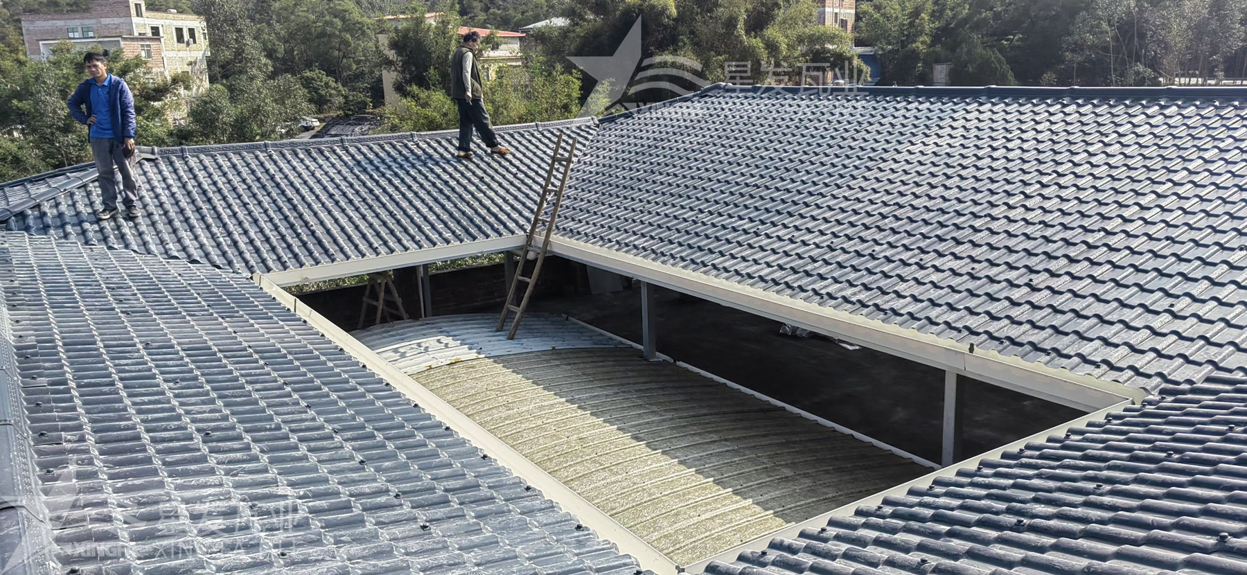 這些屋面建材在應用領域上也有所不同。如果是民居、別墅、度假區、住宅小區或者園林建設等場景,建議使用合成樹脂瓦。這種屋面建材外觀好看,立體感強,具有仿古特色。如果是工業廠房、倉庫、農貿市場、種植園或者養殖業等領域,建議使用PVC防腐瓦。如果是跨度比較大的輕重工業,也無需擔心,因為有專門解決化工廠、冶煉廠、漂染廠、化肥廠、鋼鐵廠等腐蝕性廠房問題的APVC防腐耐候復合瓦。