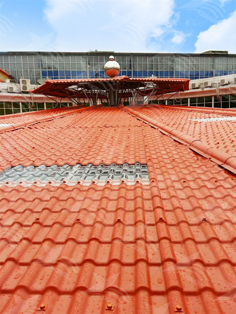 樹脂瓦屋面的骨架搭建有著嚴格的間距要求。根據瓦板的不同寬度,對應著不同的骨架間距。例如,880mm寬的瓦板對應著660mm的骨架間距,而1050mm寬的瓦板則對應著750mm的檁條間距。這一設計考慮到了樹脂瓦的熱脹冷縮因素,因此不可自行加大間距,否則樹脂瓦屋面很容易出現下陷或拱起的狀況。