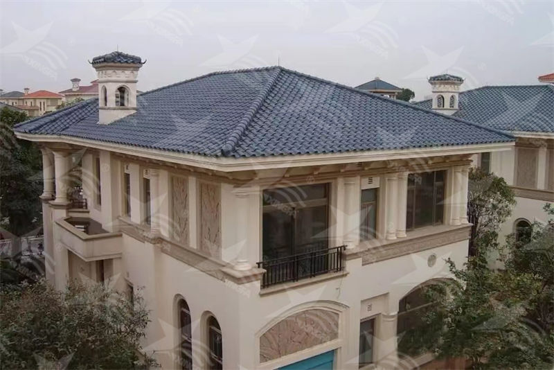 合成樹脂瓦的色盤中,有棗紅、桔紅、磚紅、金色、藍色、灰色、墨綠等多種選擇,無論是現代簡約還是經典復古風格,都能找到適合的配色方案。因此,在建筑舞臺上,合成樹脂瓦正在以藝術品的形式展現自己的魅力。